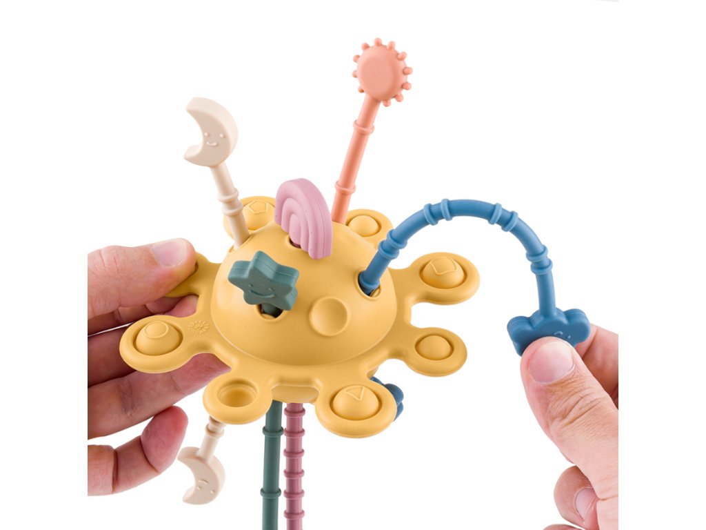 Všestranná senzorická hračka ve tvaru planety Petite&Mars nejen stimuluje smysly, ale podporuje také rozvoj malých ručiček. Tato neobvyklá hračka může sloužit jako kousátko i jako nástroj pro rozvoj manuálních dovedností. Obsahuje mnoho prvků pro zkoumání: tlačítka na mačkání, silikonové šňůrky s různým stupněm obtížnosti při jejich tahání a zajímavé tvary související s atmosférickými jevy, což zaručuje dlouhotrvající a tvůrčí zábavu.
