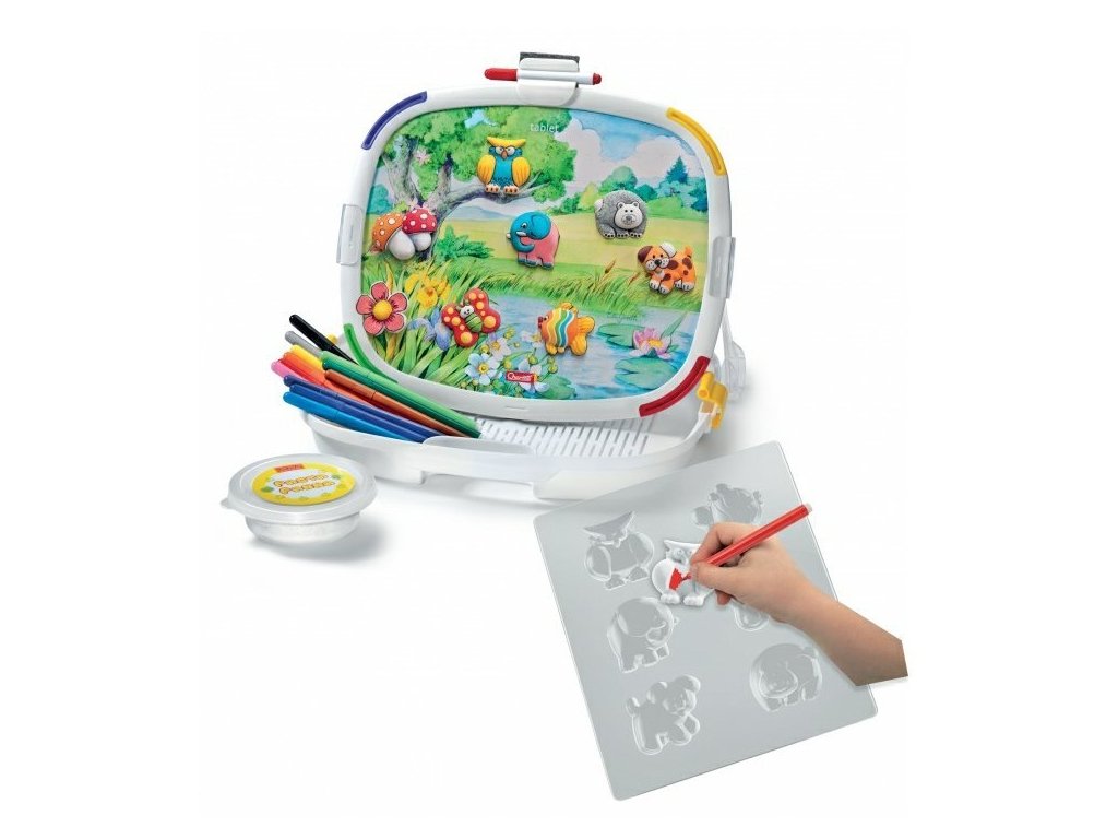 Se soupravou Tablet Creativo můžete vytvářet úžasné magnetky, které je možné připevňovat na oboustrannou tabulku nebo kamkoli jinam – třeba na lednici v kuchyni. Díky kouzelné hmotě Pasta Panna, která se snadno tvaruje, je lehká jako pírko a nelepí se na ruce ani na formy, je pro děti snadné vytvářet fantastická zvířátka, jež pak mohou dle svého uvážení pomalovat přiloženými fixy.