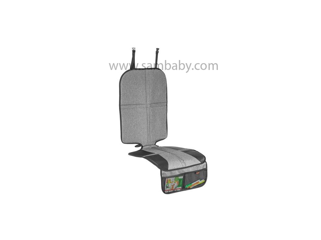Protiskluzový povrch pro bezpečné uchycení dětské autosedačky, extra velký povrch, ideální pro protisměrné dětské autosedačky, chrání před známkami otlaku a nečistotami v autě.Ochrana dětí a autaDětské autosedačky jsou umístěny v autě přímo na sedadle, kde dříve či později zanechají trvalé stopy na potahu. Ochranná podložka TravelKid chrání sedadlo před nárazy dětské sautoedačky a také zajišťuje bezpečnou pozici dětské autosedačky. Ochrana sedadla je jedním z produktů Reer TravelKid. Tyto produkty zajišťují bezpečnost a pořádek v autě a usnadňují cestování s dětmi.Efektivní ochranachrání před známkami otlaku a nečistotamiDětské autosedačky, které jsou většinou používány dlouho dobu, svou vahou nebo posuvnými mechanismy způsobují otlaky nebo praskliny na sedadle auta. Ochrana sedadla jej chrání před tlakem a následným otlakům z dětské autosedačky.Díky prodložení, které přesahuje sedadlo, je jeho spodní část dodatečně chráněna proti znečištění dětskou obuví.Mimořádně velká zadní částideální pro protisměrné dětské autosedačkyV protisměrných autosedačkách se děti nohama opírají o opěradlo, které tak může být znečištěno od dětské obuvi.Ochrana sedadla TravelKid má mimořádně velkou zadní plochu, pokrývající celou výšku opěradla a zcela jej ochrání.Bezpečné a snadné použitídíky zásuvnému dílu a protiskluznému materiáluOchranu lze snadno a rychle používat na všech běžných sedadlech. Jednoduše položte na čalounění, zatlačte zásuvní díl mezi sedák a opěradlo a hotovo. Neklouzavý materiál na obou stranách zabraňuje sklouznutí ochrany sedadla ze sedadla a současně zajišťuje pevné držení dětské autosedačky na podložce.Kompatibilní s ISOFIXdíky bočním výřezůmOchrana sedadla TravelKid má boční tvarování mezi opěradlem a sedadlem. Díky tomu mohou být konektory ISOFIX dětské autosedačky připojeny k zařízení ISOFIX vozidla bez zásahu do ochranného krytu. Ochranná podložka je tak také vhodná pro všechny dětské autosedačky s upevňovacím systémem ISOFIX.Praktické kapsypro bezpečné ukládáníOchrana sedadla má 2 integrované přední kapsy ze síťoviny v oblasti nohou, které poskytují pohodlný úložný prostor pro knihy, hračky a další. Pořádek, bezpečnost a zábavas TravelKid v autěNová řada TravelKid obsahuje různé autodoplňky. Všechny produkty jsou zaměřeny na to, aby bylo cestování pro vaše dítě co nejpříjemnější a chránilo auto před nečistotami a poškozením. Kromě kapsářů na zadní části předních sedadel jsou součástí sortimentu také ochranné podložky, úložný box s organizérem a podložka na malování.Při výběru materiálu byl kladen velký důraz na kvalitu a kvalitní zpracování. Všechny produkty TravelKid jsou vyrobeny z materiálu odpuzujícího vodu a nečistoty a lze je snadno čistit.Podrobnosti:- protiskluzový povrch- extra velký povrch, ideální pro protisměrné dětské autosedačky- chrání před známkami otlaku a nečistotami v autě- ISOFIX kompatibilní- snadno se čistí díky vodě a nečistotám odpuzujícímu materiálu- praktické kapsy zajišťují pořádek- vhodné pro všechna běžná sedadlaRozměry: cca 46 x 120 cmMateriál: Polyester, polyuretanBarva: šedá melanžObsah balení: 1 x velká ochranná podložka Velikost balení: 27 cm x 27 cm x 10,5 cm