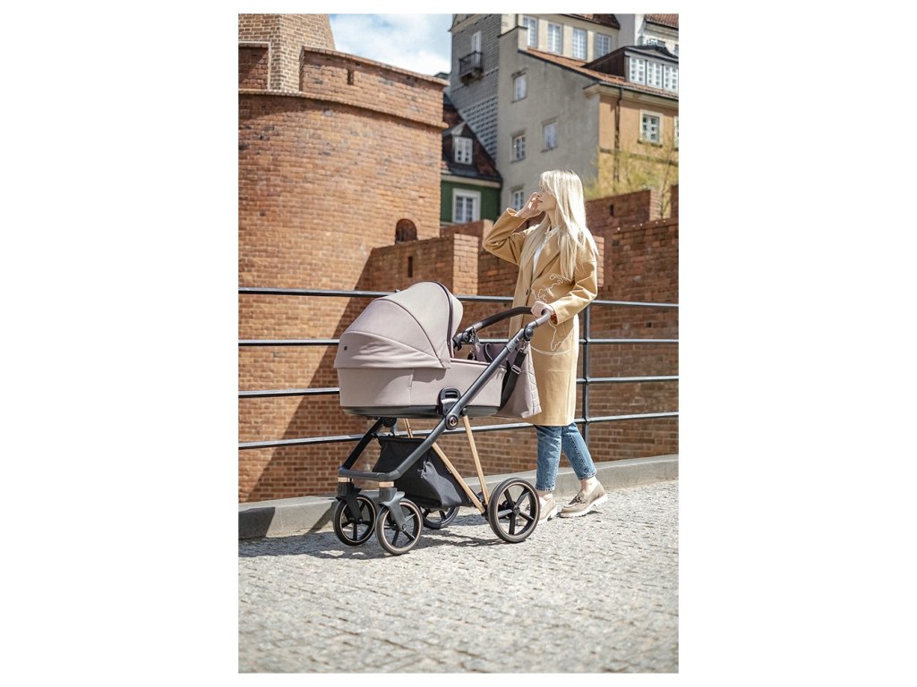 - lehký hliníkový rám- přídavný tlumič nárazů umístěný v rámové konstrukci eliminuje vibrace a nerovnosti terénu- měkké odpružení podvozku - otočná přední kola s možností aretace- bezúdržbová gelová kola - nízkoprofilová, náboje kol s dvojitými ložisky- centrální brzda- prosotrný a přepracovaný košík pod kočárkem- nastavitelná koženková rukojeť- jednoduchý systém „Click” na nacvaknutí hluboké vaničky, sportovní verze nebo autosedačky