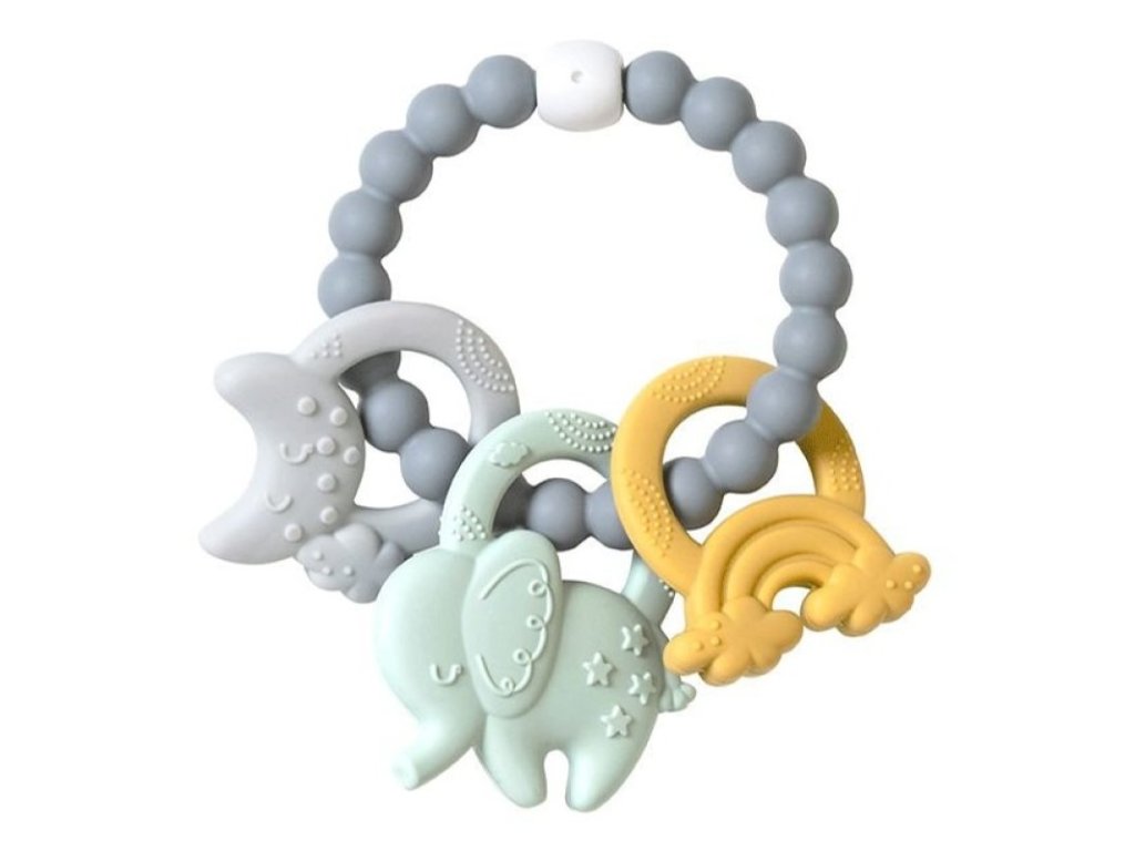 Silikonové kousátko pomáhající tišit bolest v období růstu prvních zoubků.