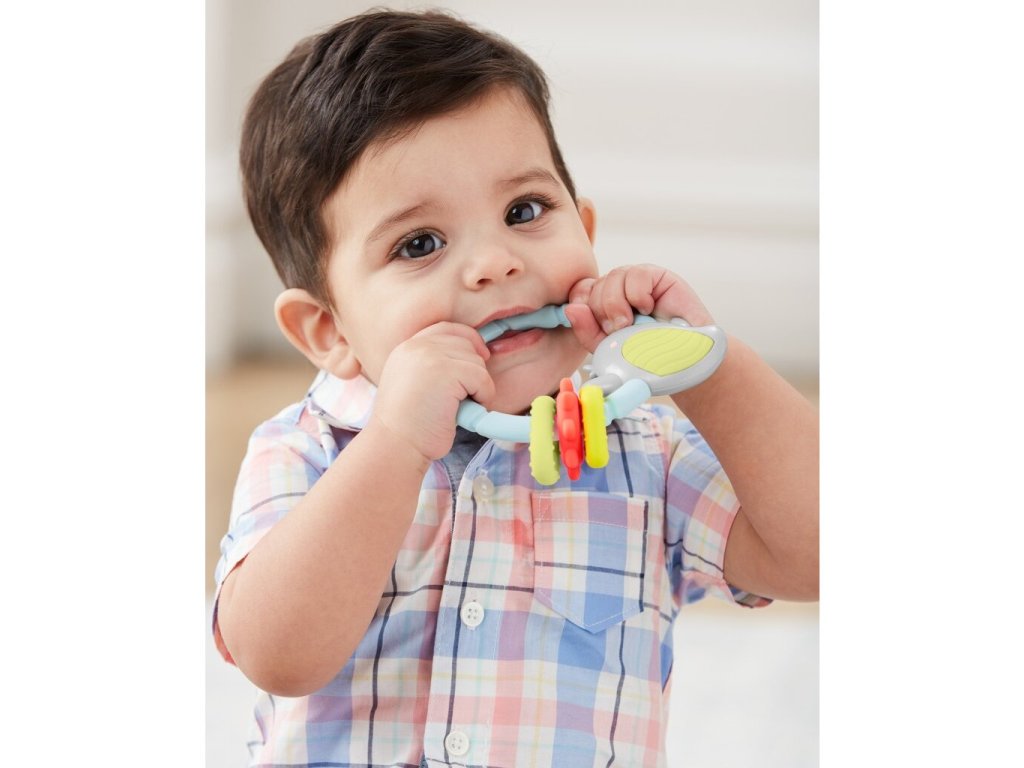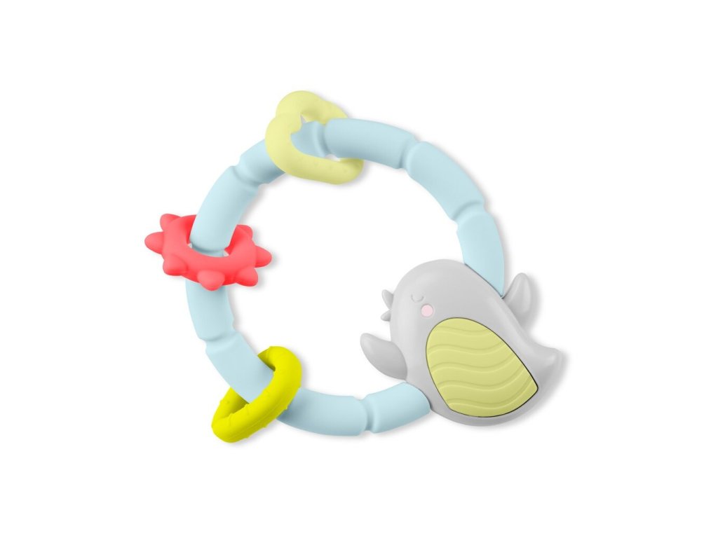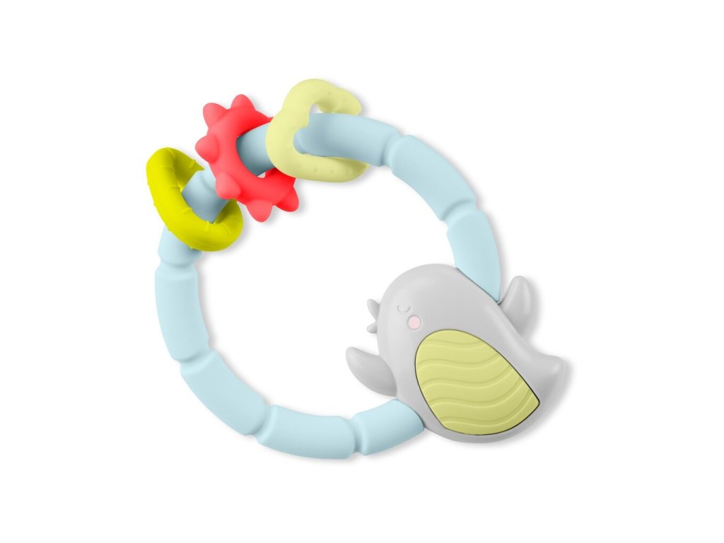 Kousátko a chrastítko v jednom. Design milého ptáčka zaměstná a zabaví každé děťátko, nejen při prořezávání prvních zoubků. Měkký silikonový materiál s texturovanými povrchy je vhodný při úlevě od bolesti při prořezávání zoubků a spolu s chrastícími kuličkami a snadno uchopitelným tvarem přidávají dítěti další smyslovou hru.