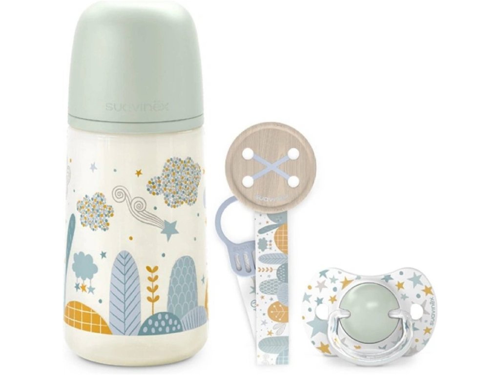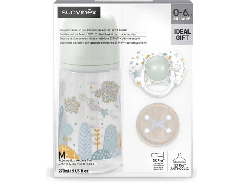 Suavinex sada Láhev 270ml + dudlík fyziologický 0-6m + klip Dreams zelená