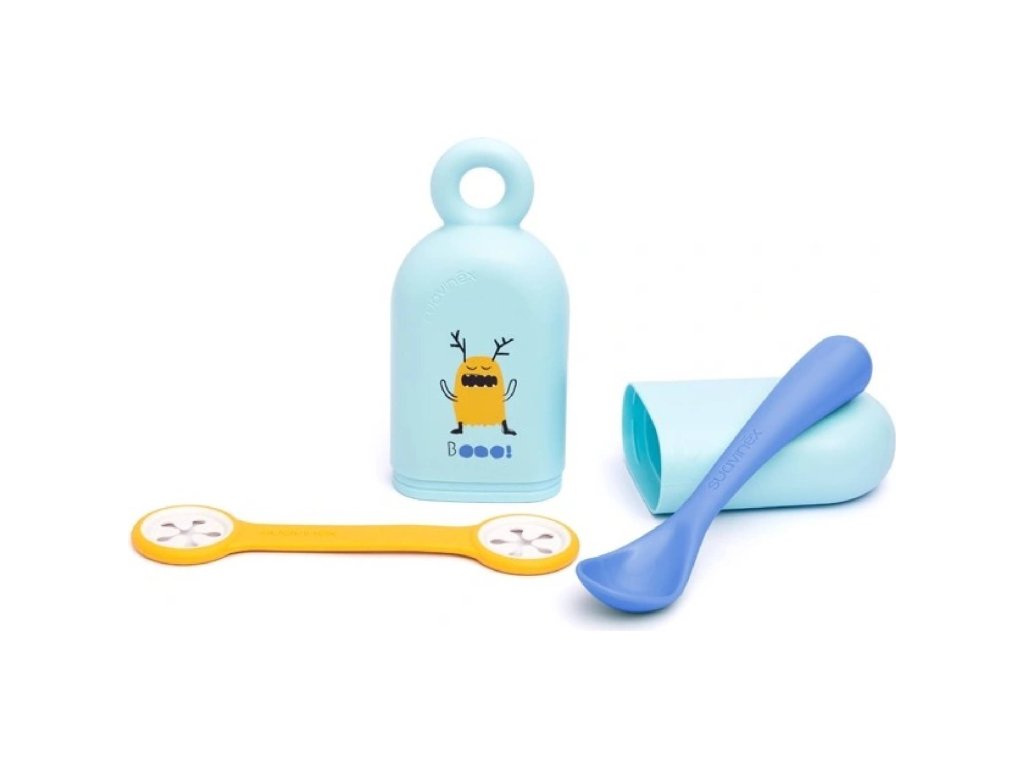 Obsahuje ergonomicky tvarovanou lžíci pro dětskou výživu, polévku a jiné jídlo polotekuté konzistence a také speciální sponku, která Vám zaručí, že dokážete i z obyčejného ubrousku vykouzlit tolik potřebný bryndák. Díky praktické krabičce budete moci lžíci přepravovat hygienicky a po jídle ji ušpiněnou bezpečně odložit.