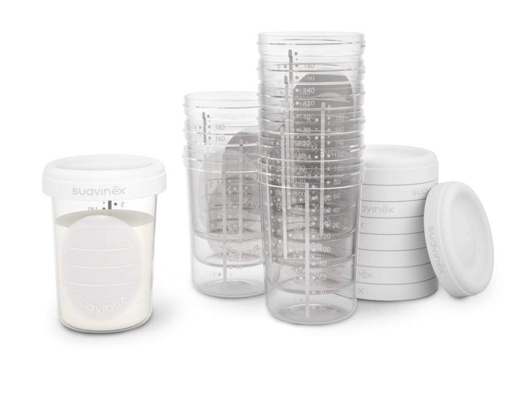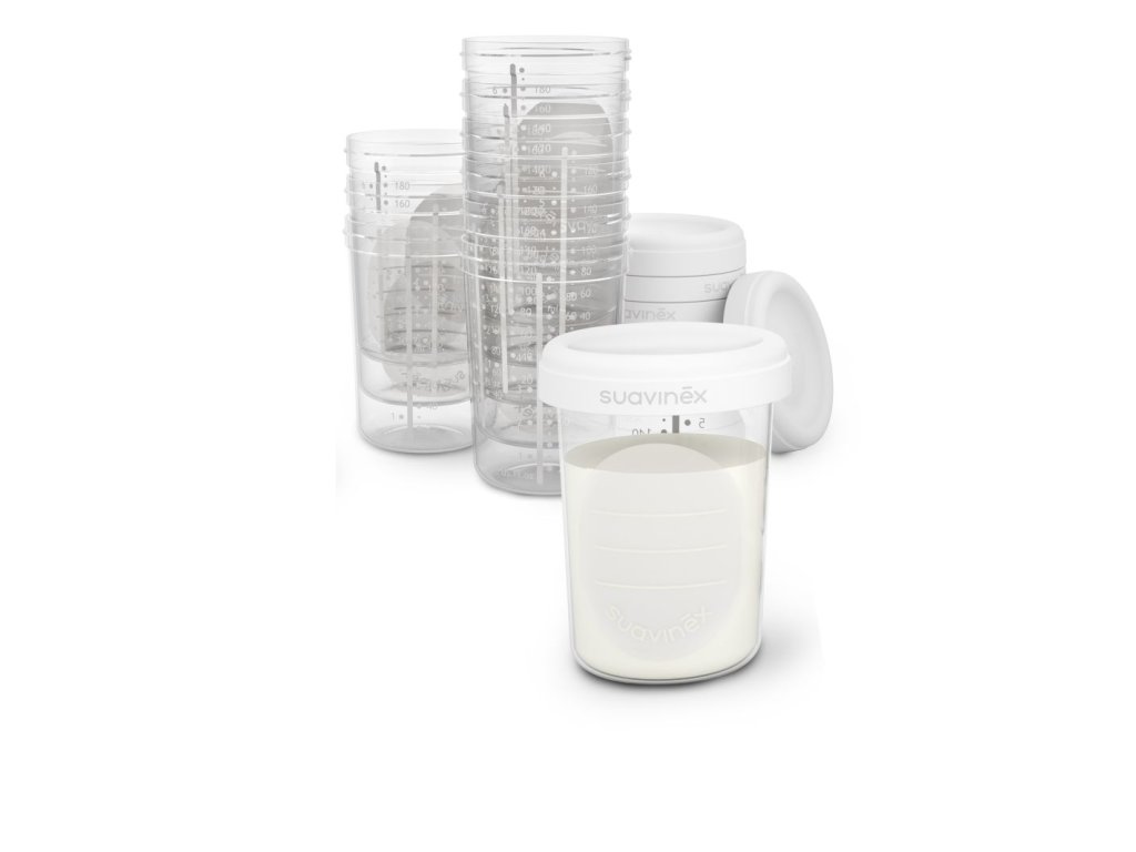 Pohárky jsou kompatibilní s odsávačkami mateřského mléka Suavinex – každá kapka se počítá, a proto s touto možností nyní přicházíme.