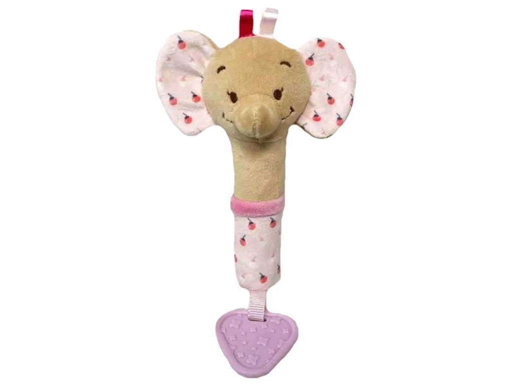 Pískací hračka s kousátkem je určena pro nejmenší děti. Hračka je lehká, dobře se drží, je příjemná na dotek a vydává příjemný zvuk.