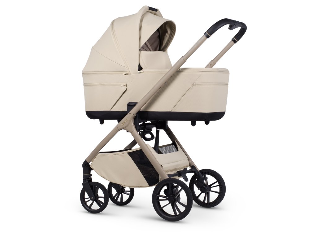 Vnitřek korbičky je navržen tak, aby zajistil dokonale rovnou a bezpečnou polohu pro novorozence. Vysoce kvalitní matrace v korbičce podporuje správný vývoj páteře a speciální sluneční stříška s UV ochranou chrání citlivou pokožku dítěte před sluncem.