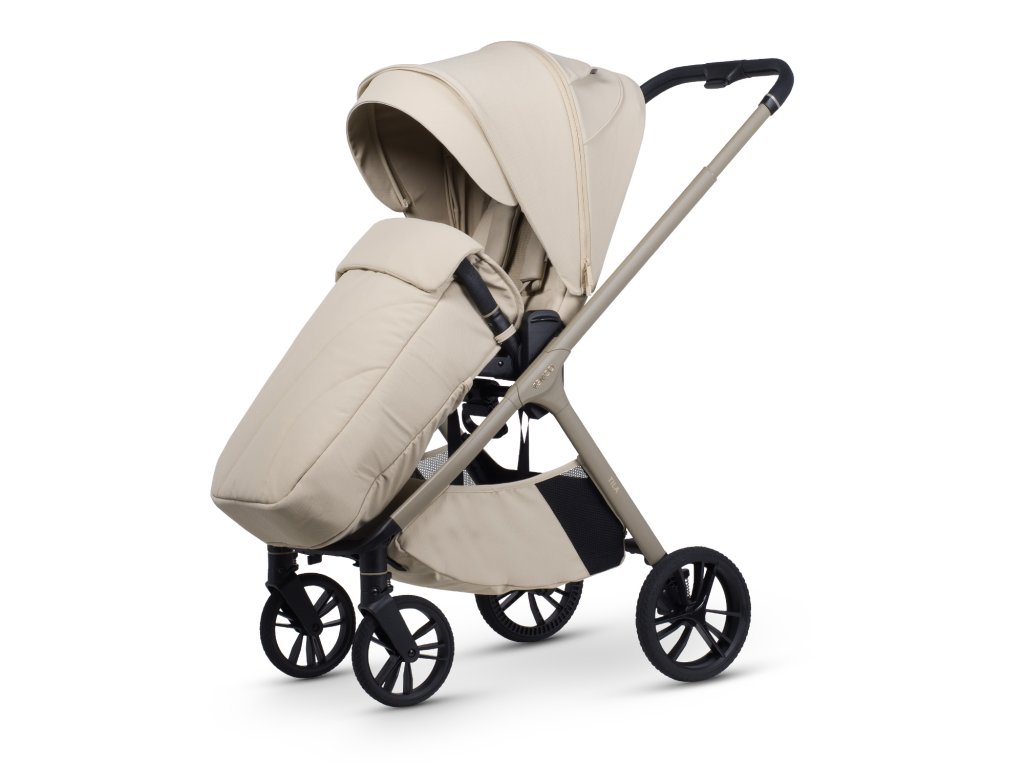 Štíhlý a ultralehký rám Tila je dodáván s kompletní sadou příslušenství: pláštěnkou, moskytiérou, nánožníkem a stylovou taškou s batohem, čímž vzniká sada připravená k použití pro každou příležitost. Tento kočárek 2 v 1 se vším příslušenstvím je sada, kterou si zaslouží každý rodič.