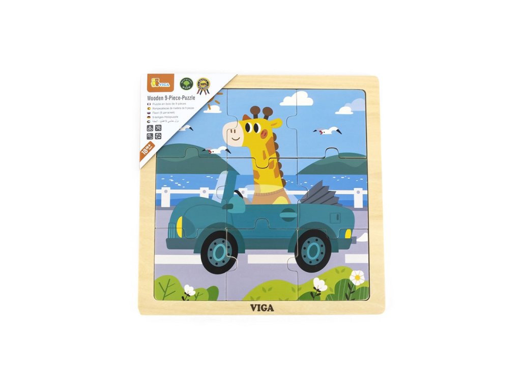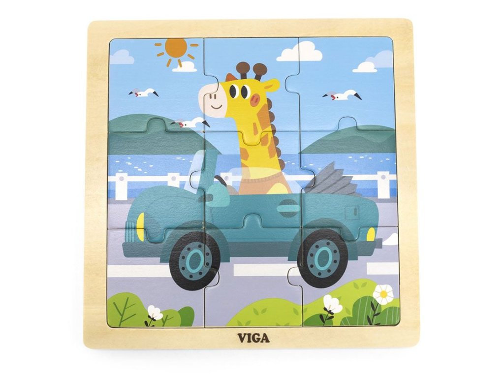 Viga Dřevěné puzzle pro nejmenší 9ks Auto