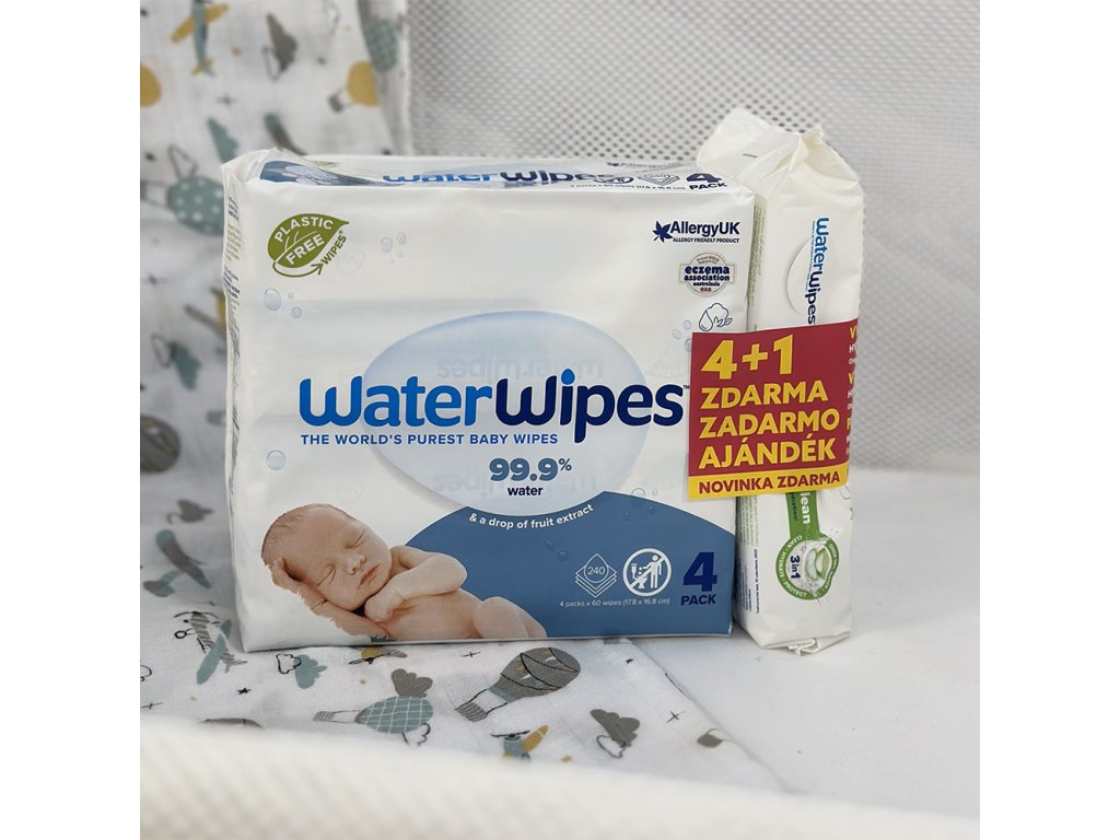 Waterwipes Ubrousky vlhčené 4x 60ks + 1ks ZDARMA