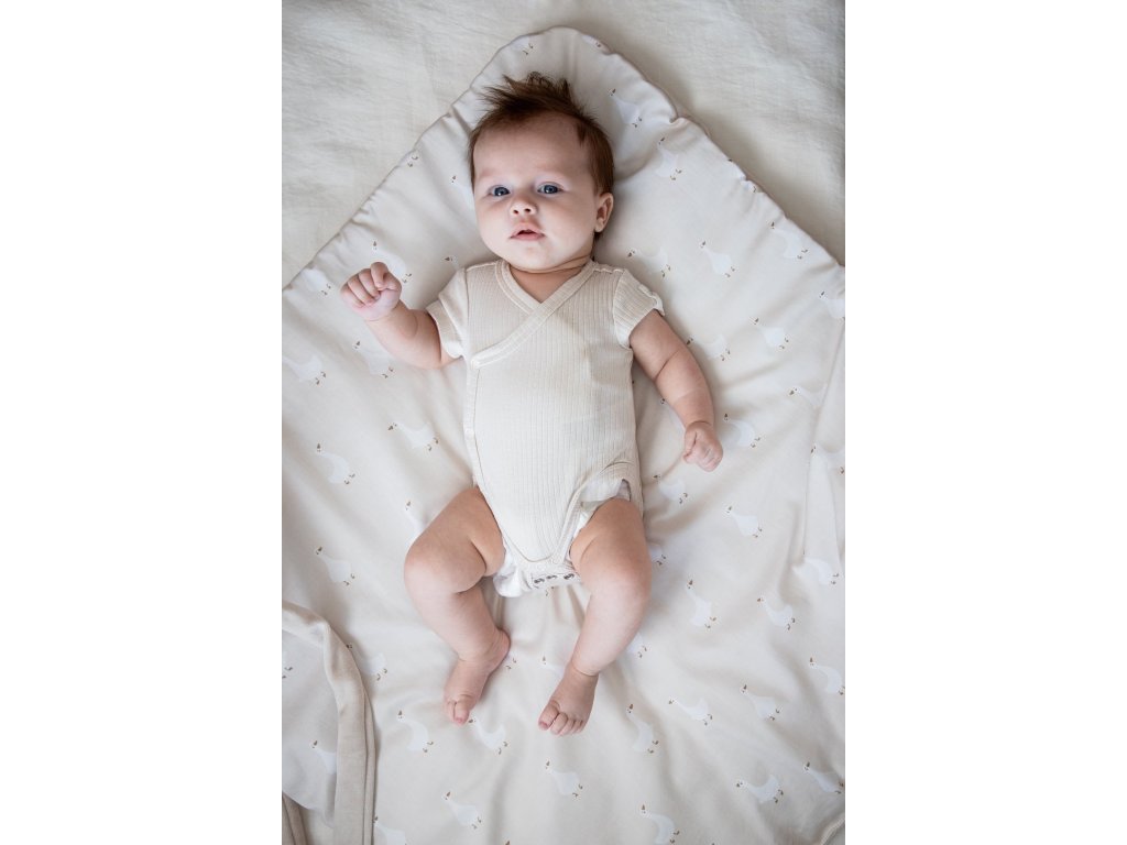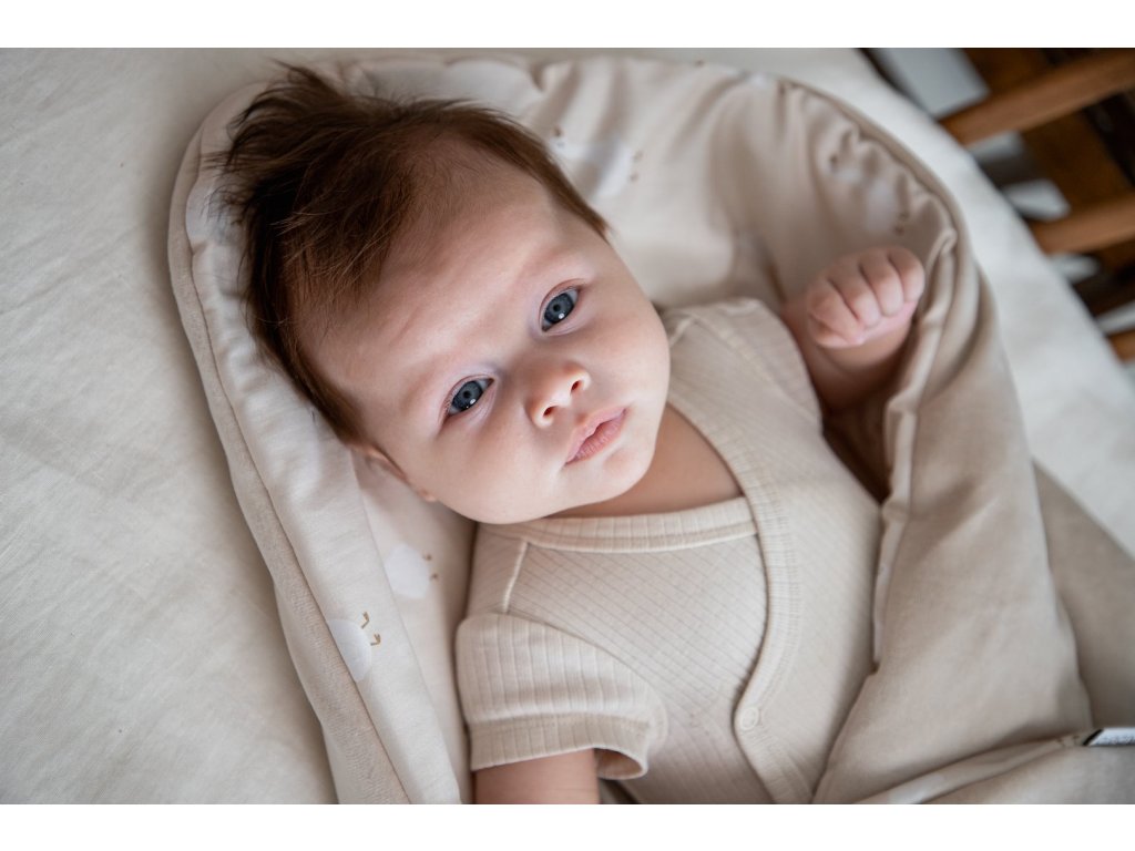 Funkční zavinovačka s antialergenní výplní pomáhá vytvořit miminku pocit bezpečí, podporuje klidný spánek a zároveň poskytuje praktické využití i v dalších měsících – jako dečka, podložka nebo první hrací deka.