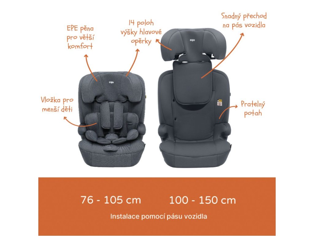 Zopa Alfa R129: Bezpečná a praktická autosedačka pro děti od 76 do 150 cm