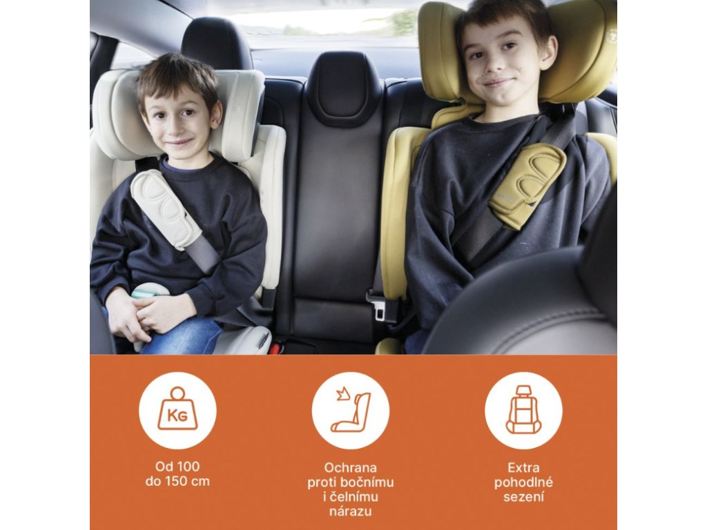Prostorná autosedačka s měkkými potahy a možností naklonění do 4 ergonomických poloh zajistí pohodlnou cestu i při delší jízdě a během spánku. Polohování se dá jednoduše nastavit pojistkou ve přední části autosedačky. Opěrka hlavy nabízí až 10 poloh nastavení, díky tomu autosedačka roste s dítětem.