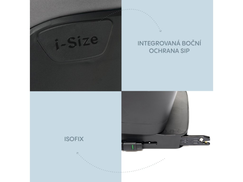 Integrovaná boční ochrana SIP po celé délce chrání dítě i ve spodní části. Splnění nejnovější normy i-SIZE garantuje bezpečí po celou dobu používání.