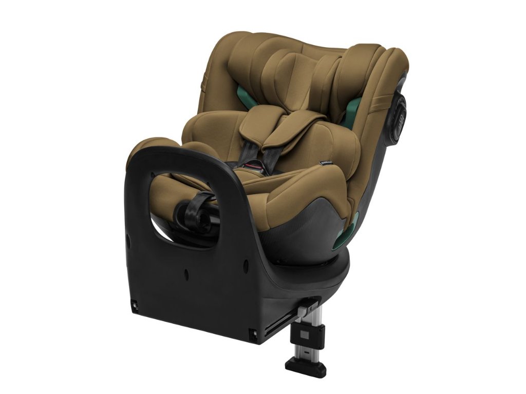 Od narození až do 19,5 kg chrání děti 5bodový bezpečnostní pás s kvalitní sponou Immi. V této fázi se autosedačka poutá pomocí isofixu a opěrné nohy. Děti mohou jezdit proti směru jízdy až do 105 cm. Díky otáčení lze od 76 cm zvolit také jízdu po směru. Až dítě povyroste, jednoduše přejdete na poutání 3bodovým pásem vozidla. Opěrná noha se sklopí pod autosedačku. Vaše dítě je perfektně chráněné od narození až do 135 cm.