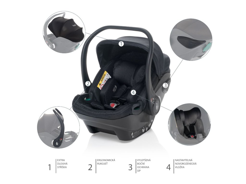 Novorozenecká autosedačka XS i-Size se postará o bezpečné cestování dětí od narození do 80 cm.
