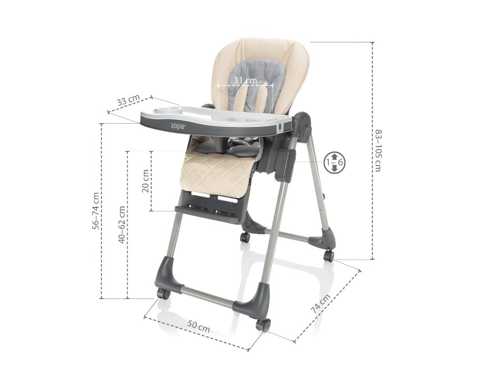 Polohovatelná zádová opěrka, polohovatelná opěrka na nožičky, nastavení výšky židličky, nastavení vzdálenosti pultíku, 5bodový bezpečnostní pás, snadné čištění, vložka pro menší děti, kolečka s brzdou, kompaktní rozměry ve složeném stavu – to je jídelní židlička Monti 2. Vhodné pro děti od narození do 15 kg.