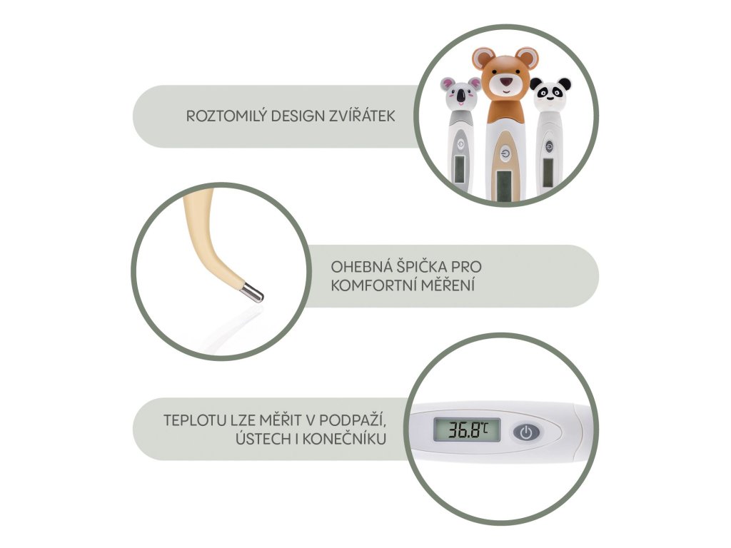 Objevte dětský teploměr se zvířátky, který přináší klid a pohodlí. Bezpečný, rychlý a přesný pomocník pro láskyplnou péči o vaše nejmenší. Ideální volba pro klidné a spokojené miminko.