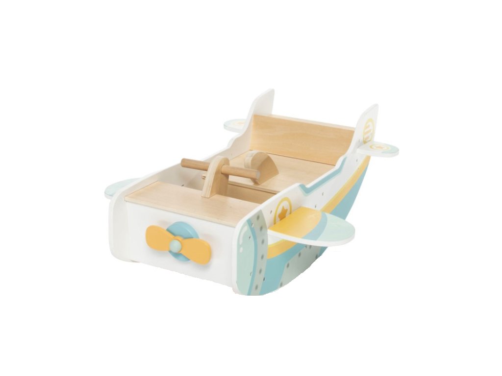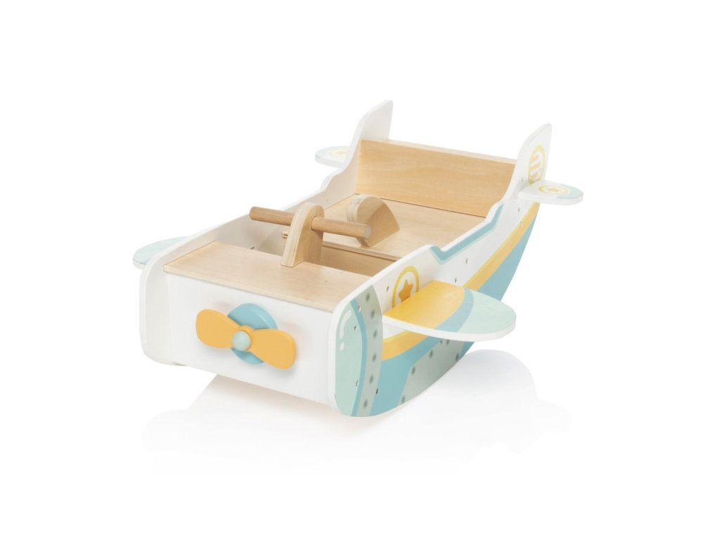 Letadlo, které je připraveno ke startu a připraví dětem hodiny zábavy. Bezpečné houpání je zajištěno dvěma řídítky v přední části. Široké sedadlo má opěrku zad, pokud se chce dítě jen jemně houpat vlastní vahou. Houpačka letadlo je vyrobena z kvalitního odolného bukového dřeva. Všechny použité barvy jsou zdravotně nezávadné a na vodní bázi.