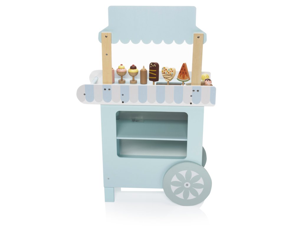 Tento propracovaný a barevně laděný set je navržen tak, aby rozvíjel kreativitu, představivost a podporoval hravé hraní rolí. Nádherně vyladěný vozík připomínající prodejnu zmrzliny je připraven vyrazit na cestu do dětského světa fantazie