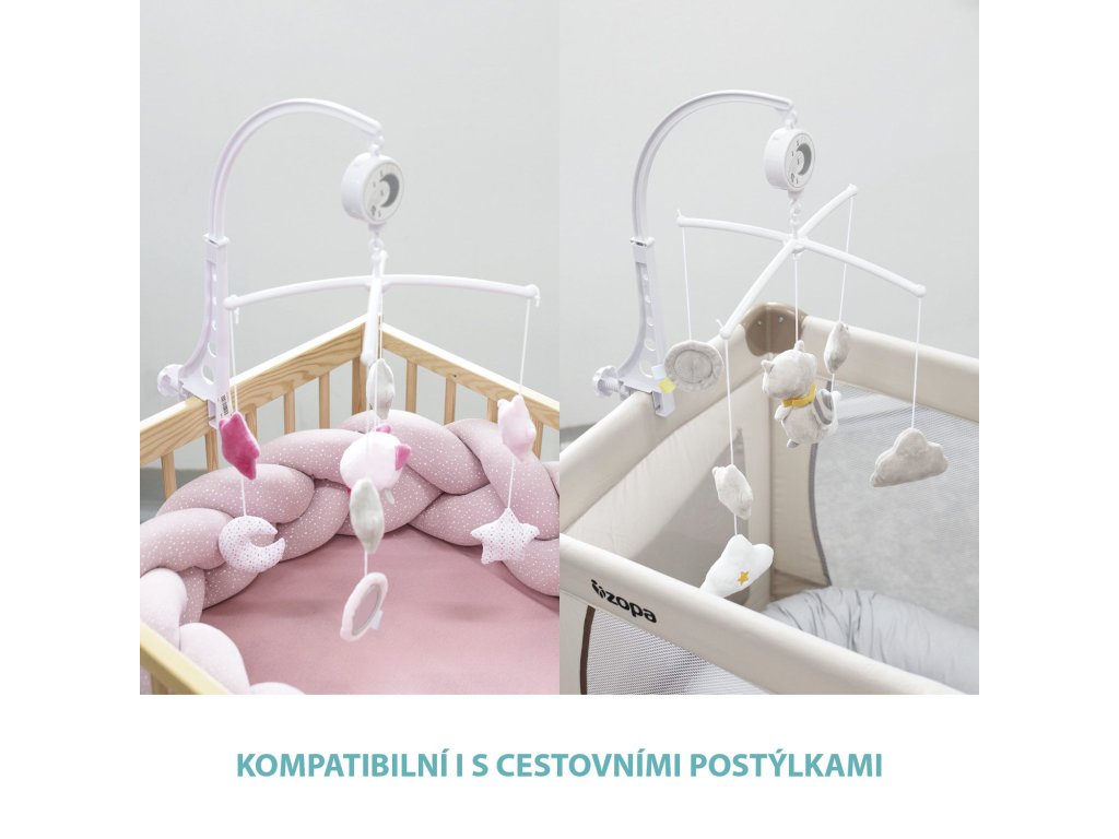 Rozpohybované plyšové hračky v jemných barvách přírodních motivů, kterým dominuje roztomilé zvířátko, doprovází několik příjemně sladkých melodií. To vše u děťátka podporuje sluchové, motorické a vizuální vjemy. V jeho postýlce se tak navodí příjemná atmosféra, která děťátko lehce zklidní a jemně provede až do říše snů.