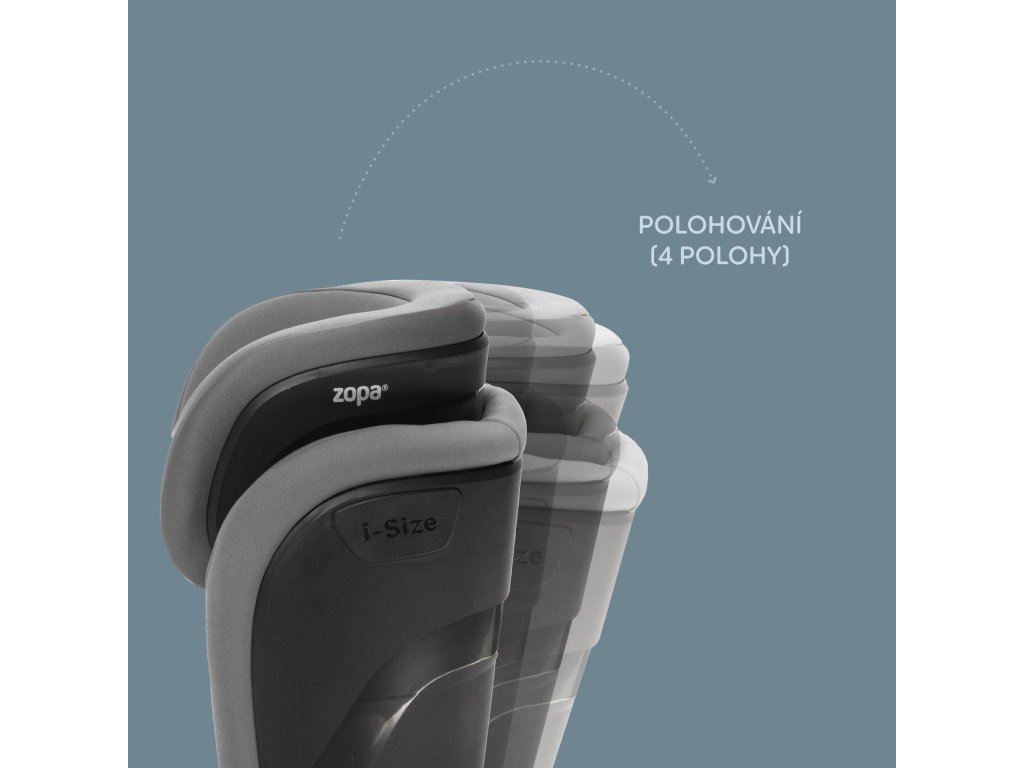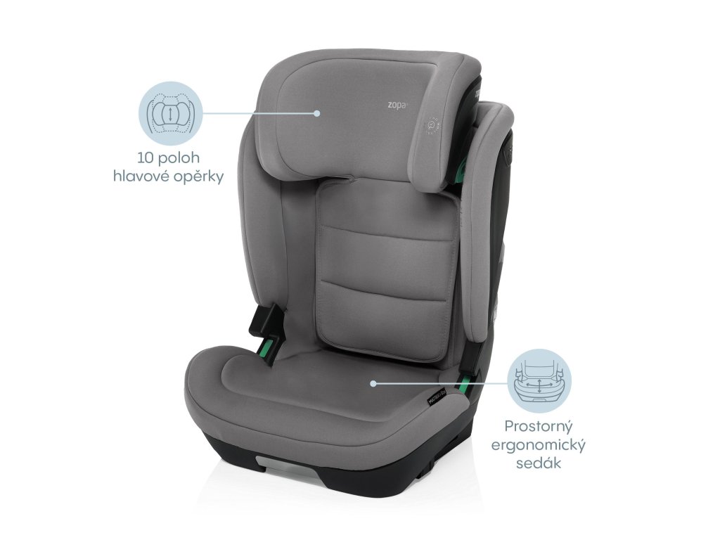 Polohování do 4 pozic, výškově nastavitelná opěrka hlavy, SIP ochrana bočního nárazu, nezávislé ISOFIX, instalace pomocí ISOFIX i bezpečnostním pásem vozidla.