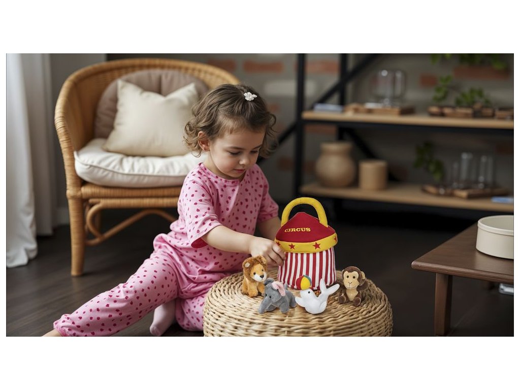 Roztomilý plyšový set pro nejmenší, který rozvíjí hmat, představivost i jemnou motoriku. Bezpečný, měkký a ideální na doma i na cesty.