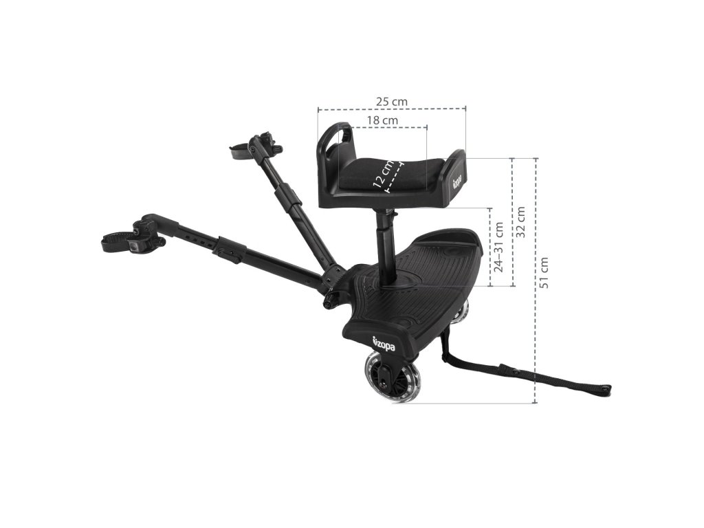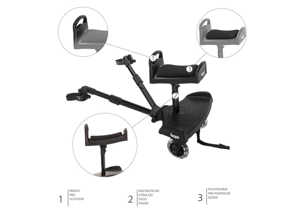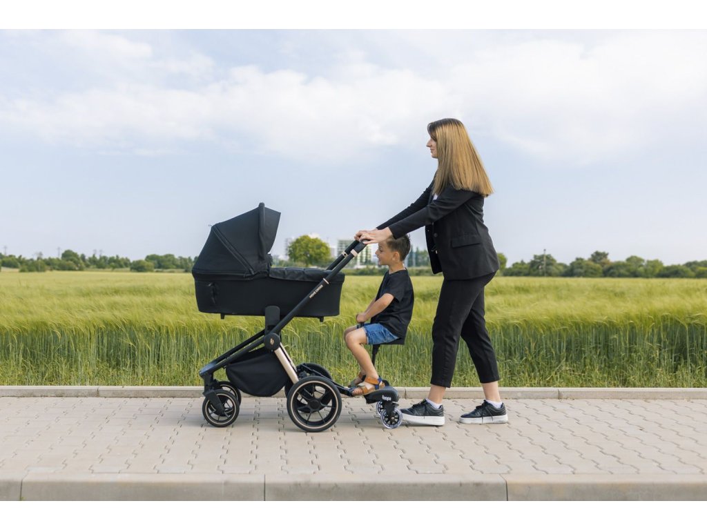 Ideální na delší trasy – sedátko ke stupátko Segboard usnadní staršímu sourozenci cestování. Měkce vypolstrovaný sedák nabízí pohodlné svezení. Praktické madlo v přední části umožní dítěti držet se a lépe tak držet rovnováhu. Sedátko lze jednoduše upevnit ke stupátku a pomocí pojistky nastavit jeho výšku.