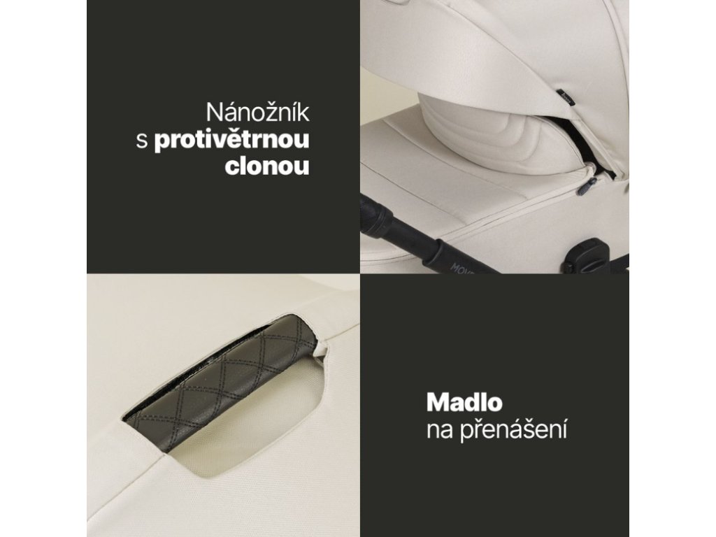 Korba Move Cross 5 XL se nasazuje přímo na podvozek bez adaptérů, váží jen 3,9 kg a je vybavená měkkou matrací i prodloužitelnou stříškou. Díky ventilačnímu systému je vhodná do každého ročního období.
