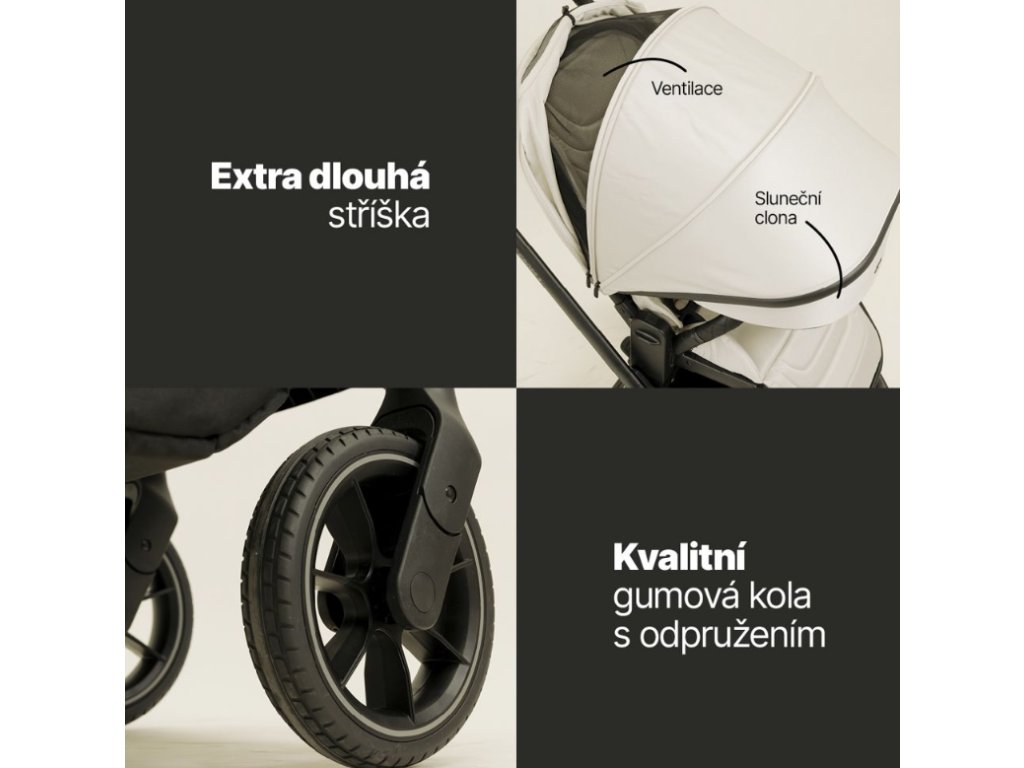 - Výškově nastavitelné sezení i stříška (3 úrovně)