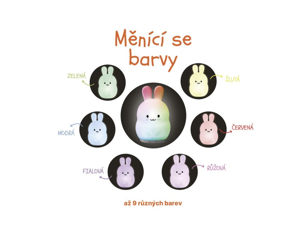 Lampička nabízí stmívatelné bílé světlo, které snadno přizpůsobíte aktuálním potřebám, jako je čtení pohádek, noční kojení nebo přebalování, aniž byste rušili děťátko ostrým světlem. Pro vytvoření hravější atmosféry umožňuje plynulé přechody mezi barvami, které lze snadno měnit jemným poklepáním, případně zastavit na oblíbené barvě. Díky světýlku se bude děťátko cítit bezpečně a pomůže mu s klidnějším usínáním.