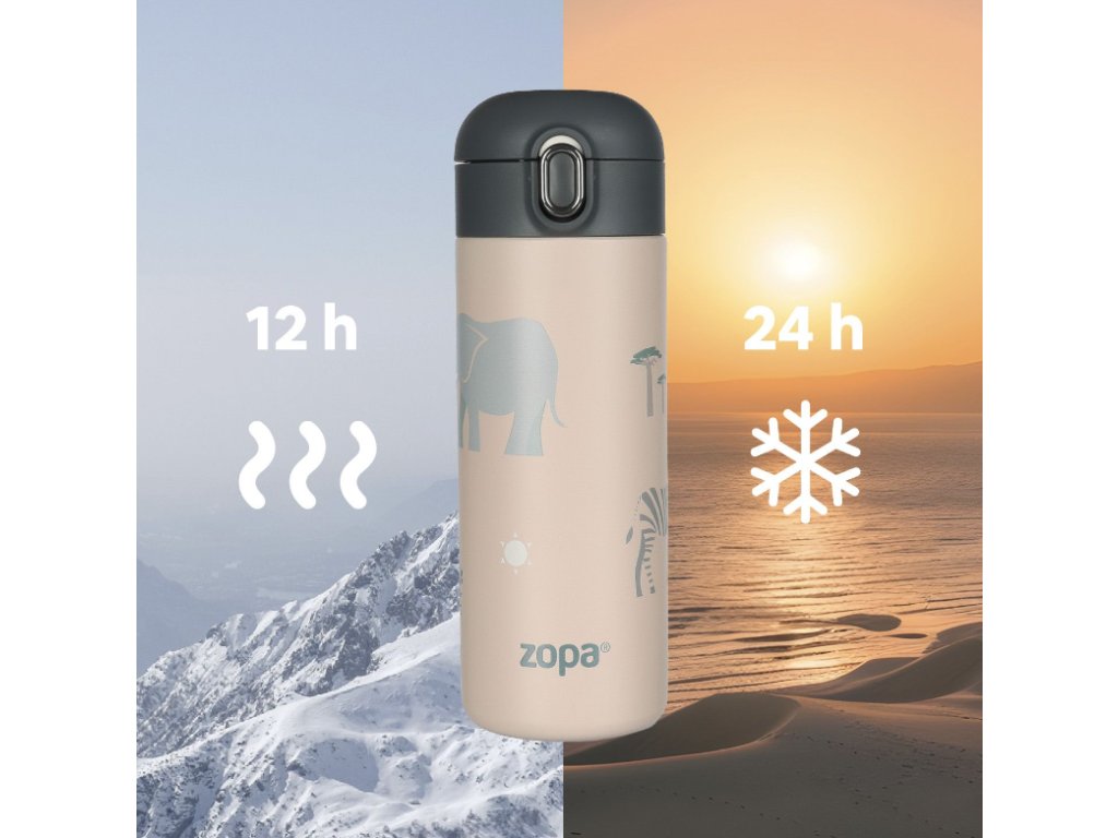 Žádný problém! Designová termoska s veselými motivy o objemu 400 ml je díky kvalitnímu vzduchotěsnému uzávěru a dvojité stěně z nerezové oceli připravena udržet jakékoliv tekutiny vždy v optimální teplotě po dlouhou dobu - horké nápoje uchovává teplé až 12 hodin a chladné až po dobu 24 hodin. Vaše dítě tak bude mít svůj oblíbený nápoj stále při ruce, ať už se vydá za dobrodružství kamkoliv.