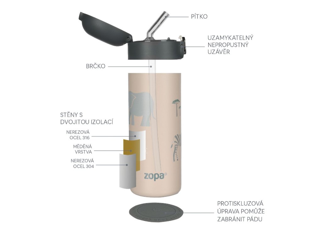 Žádný problém! Designová termoska s veselými motivy o objemu 400 ml je díky kvalitnímu vzduchotěsnému uzávěru a dvojité stěně z nerezové oceli připravena udržet jakékoliv tekutiny vždy v optimální teplotě po dlouhou dobu - horké nápoje uchovává teplé až 12 hodin a chladné až po dobu 24 hodin. Vaše dítě tak bude mít svůj oblíbený nápoj stále při ruce, ať už se vydá za dobrodružství kamkoliv.