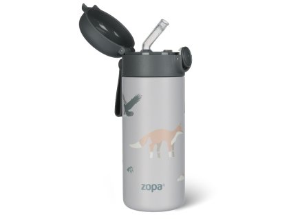 Zopa Termoska na tekutiny s brčkem a silikonovým držákem 350 ml, Mountains