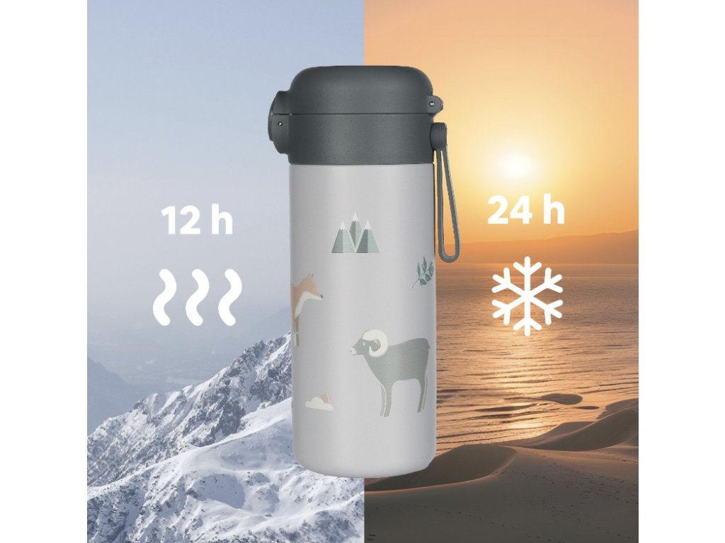 Designová termoska s veselými motivy o objemu 350 ml je vybavena spolehlivým vzduchotěsným uzávěrem a dvojitou vrstvou kvalitní nerezové oceli, aby byl nápoj vždy v takovém stavu, jaký ho připravujete - horké nápoje uchovává teplé až 12 hodin a chladné až po dobu 24 hodin.