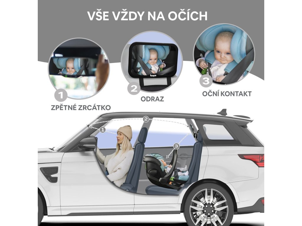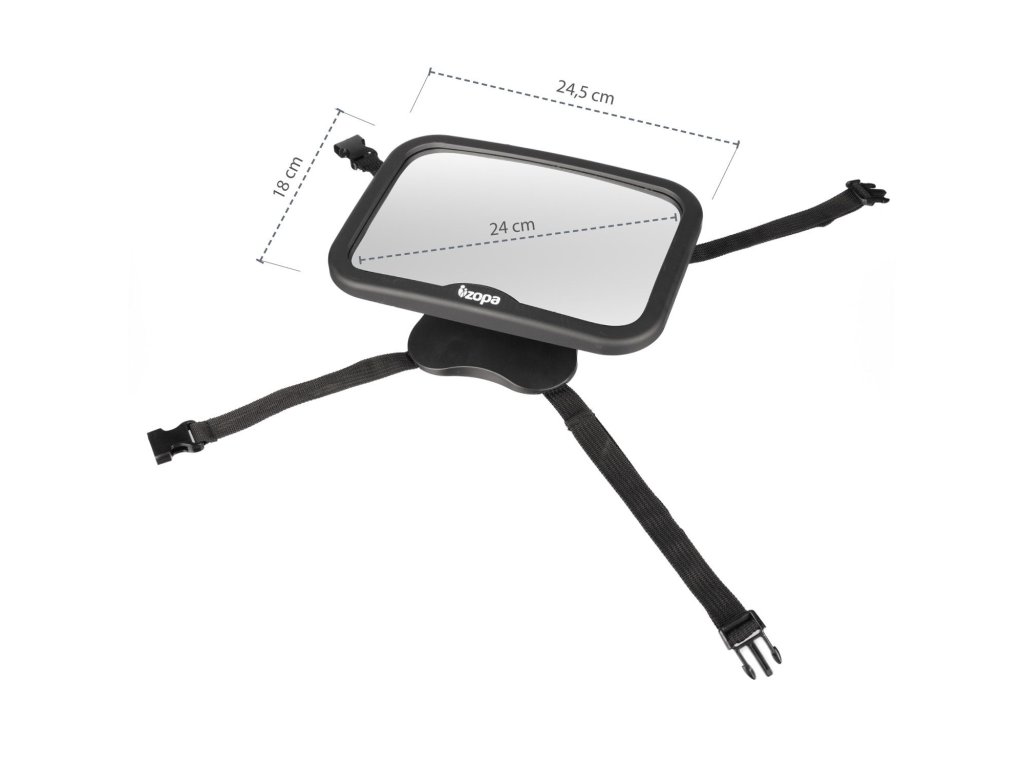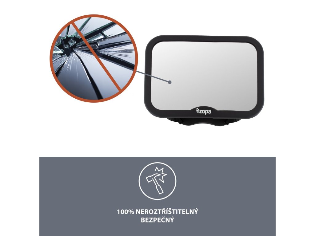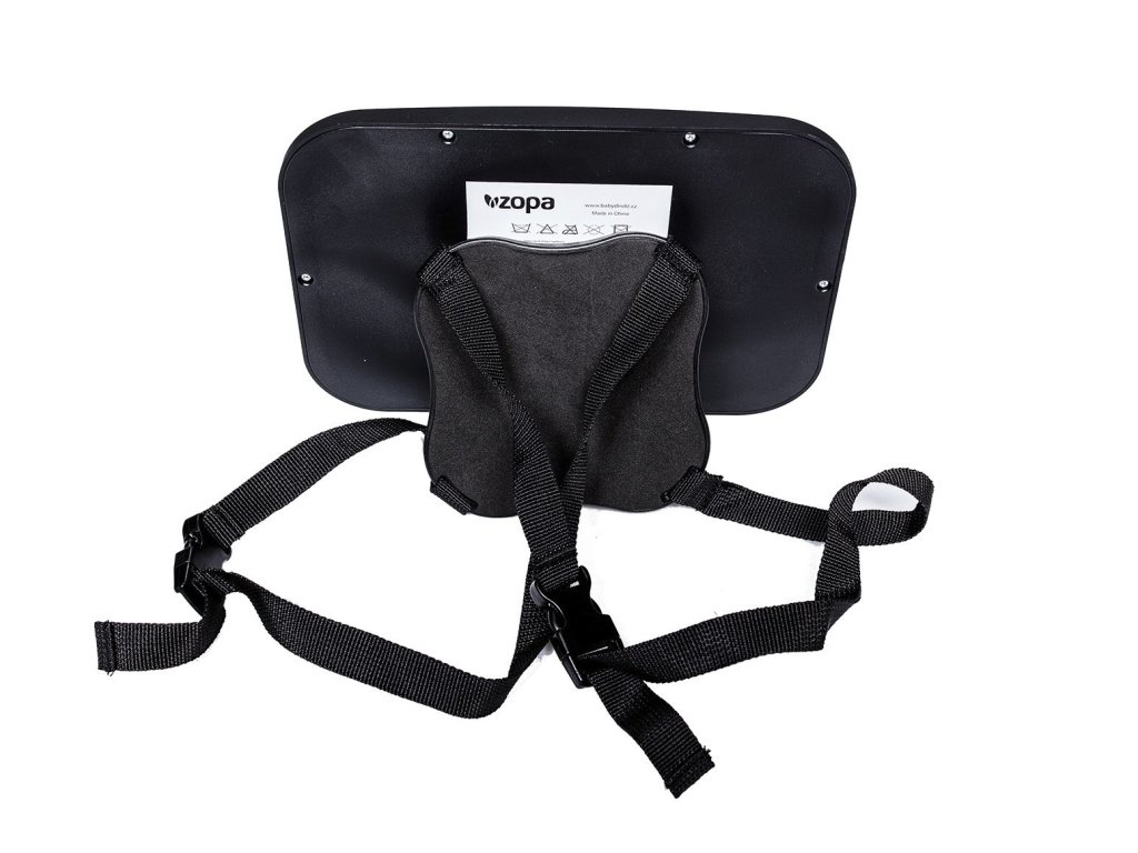 Zpětné zrcátko ZOPA s elegantním a moderním vzhledem je skvělý pomocník na cesty s dítětem. Díky zrcadlu může rodič dítě kontrolovat kdykoliv během jízdy, pokud se sedačka nachází v protisměru jízdy. Vypuknutí design zrcadla umožňuje 360° pohled na dítě. Pomocí nastavitelných pásů se zrcadlo jednoduše nasazuje na opěrku hlavy sedadla. Možné je ukotvení do tvaru písmene "X" nebo do tvaru "kříže".